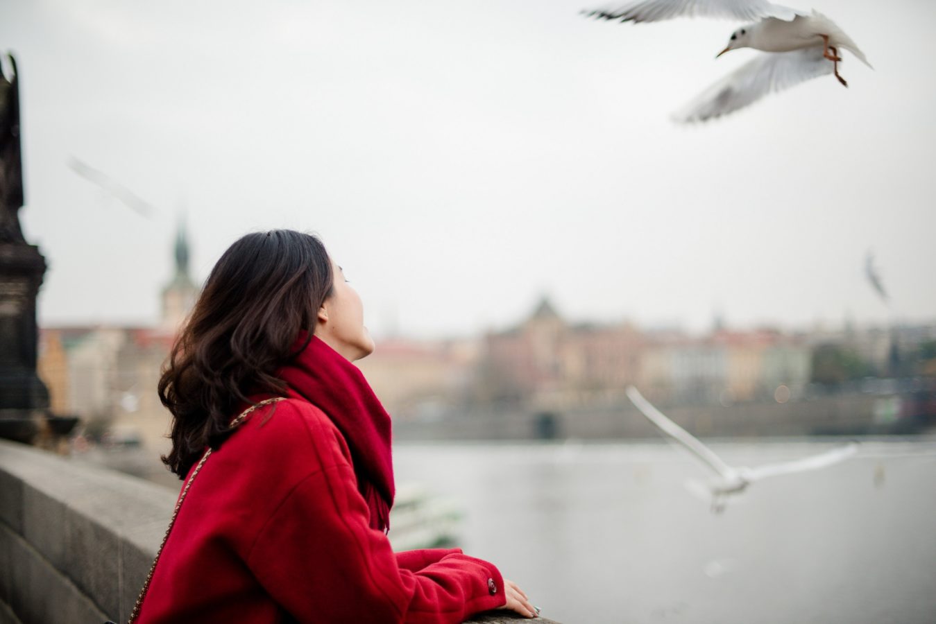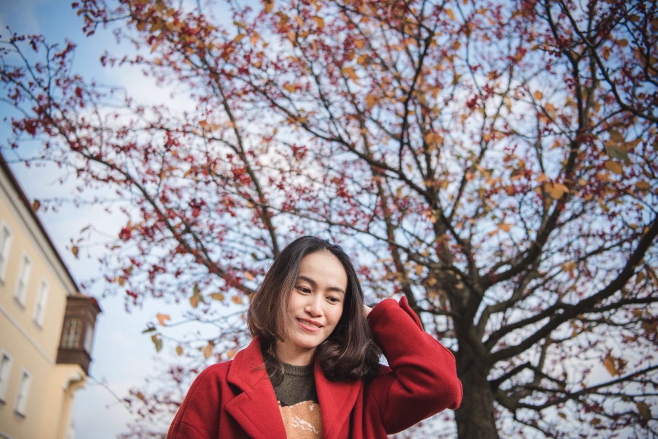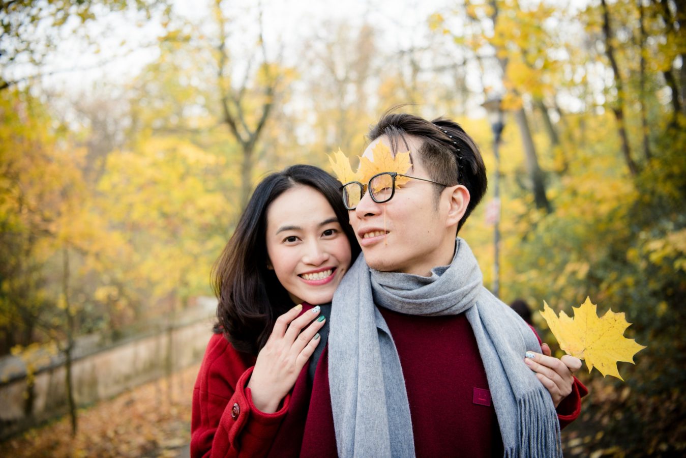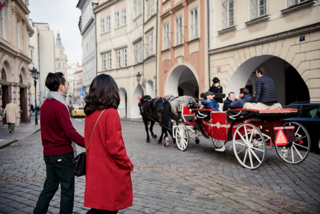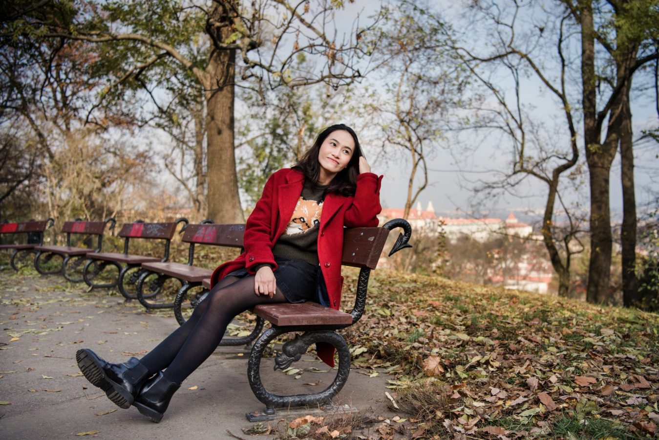 This sweet couple, Eunice and Chris, is from China – and I got the chance to capture the magic of their relationship while sharing a light-hearted and cheerful photoshoot together. The dashing red color of their matching outfits as well with the natural October colors definitely added an atmospheric touch. Together, they were so effortless to photograph while walking the lesser-known streets of Prague with their easy-going nature, dynamic personalities, friendly attitudes and beautiful souls.